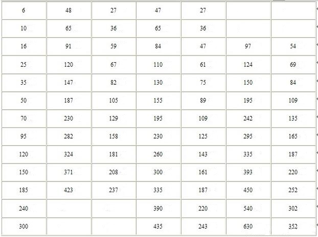 5.以上数据仅供参考,最终设计和确定电缆的型号和规格应参照有关专业资料或电工手册。