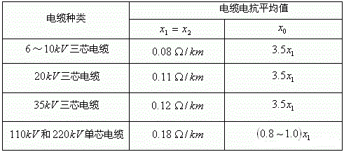 在实用计算中,电缆的正、负、零序电抗可采用表所列的平均值。