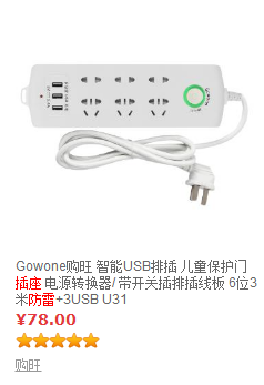 建议:防雷是一个综合工程,要尽可能地堵掉所有的漏洞,防雷插座是目前预防感应雷最有效的手段。市面上目前防雷插座品牌也很多,买卖宝上为您提供了购旺品牌的防雷插座,采用原生高温阻燃材料,一体式铜芯结构,插孔加装儿童保护门,防雷、安全、智能,欢迎前去选购。